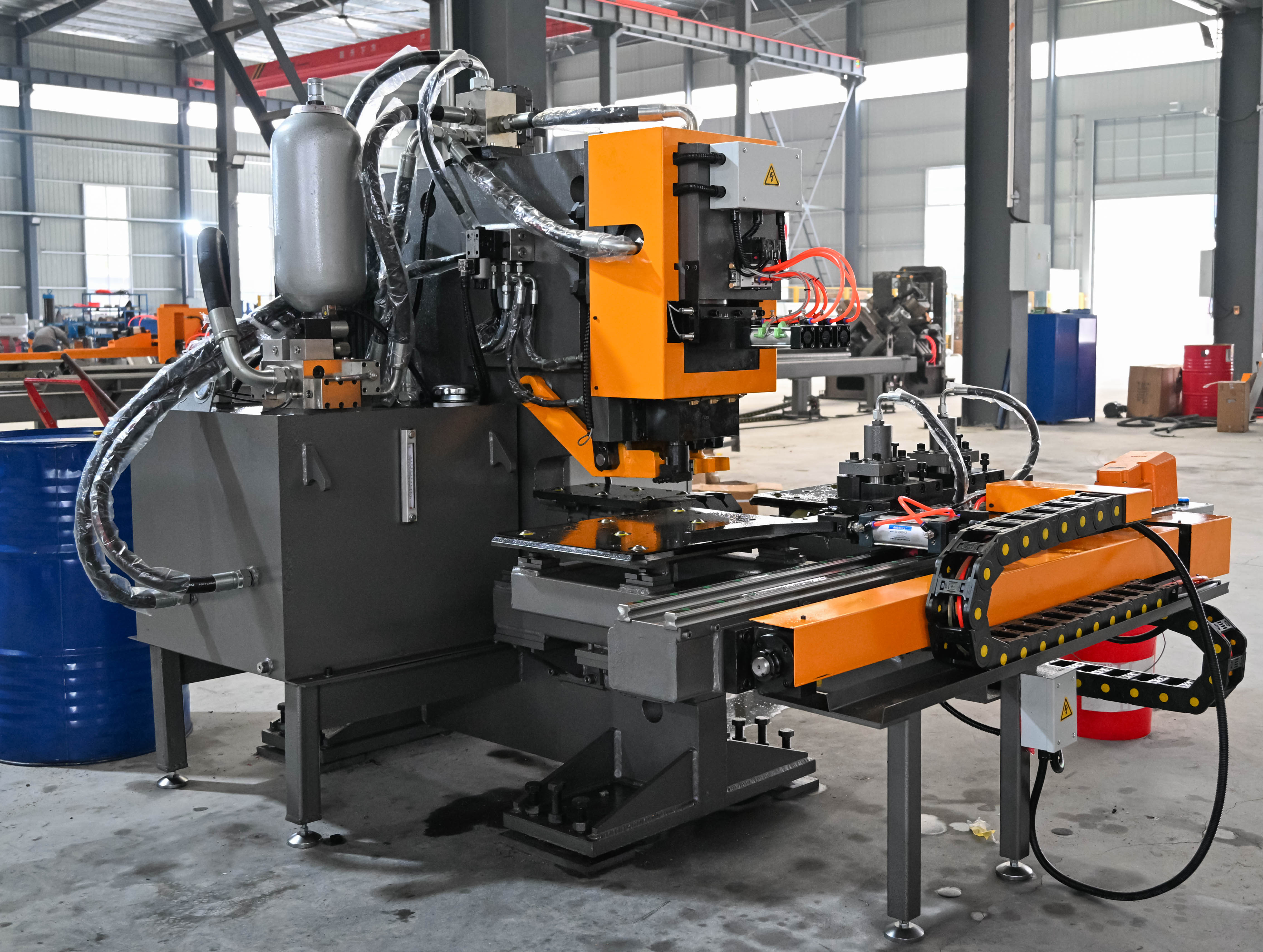 The machine is the automatic special punching, marking machine for steel plates/connection plates, mainly in the field of angle steel tower industry, electric power fittings, structure storage facilities, and steel structure construction industries etc.